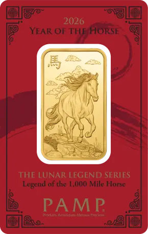 Objevte nadčasovou hodnotu zlata se zlatým slitkem o hmotnosti 1 unce | PAMP | Rok koně (1000 mil) | 2026. Tyto pečlivě vyrobené slitky z ryzího zlata o ryzosti 999,9/1000 představují eleganci a bezpečí. Tyto zlaté slitky o hmotnosti 31,1035 g, vyrobené jednou z nejdůvěryhodnějších rafinérií, PAMP Switzerland, jsou ideální pro investory, kteří chtějí diverzifikovat nebo rozšířit své portfolio drahých kovů.
